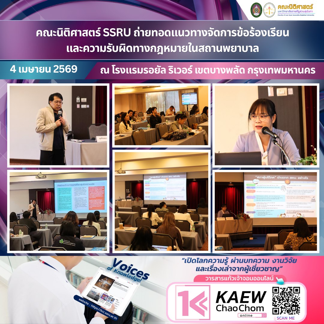 The Faculty of Law, SSRU, delivered guidance on complaint management and legal liability in healthcare institutions.