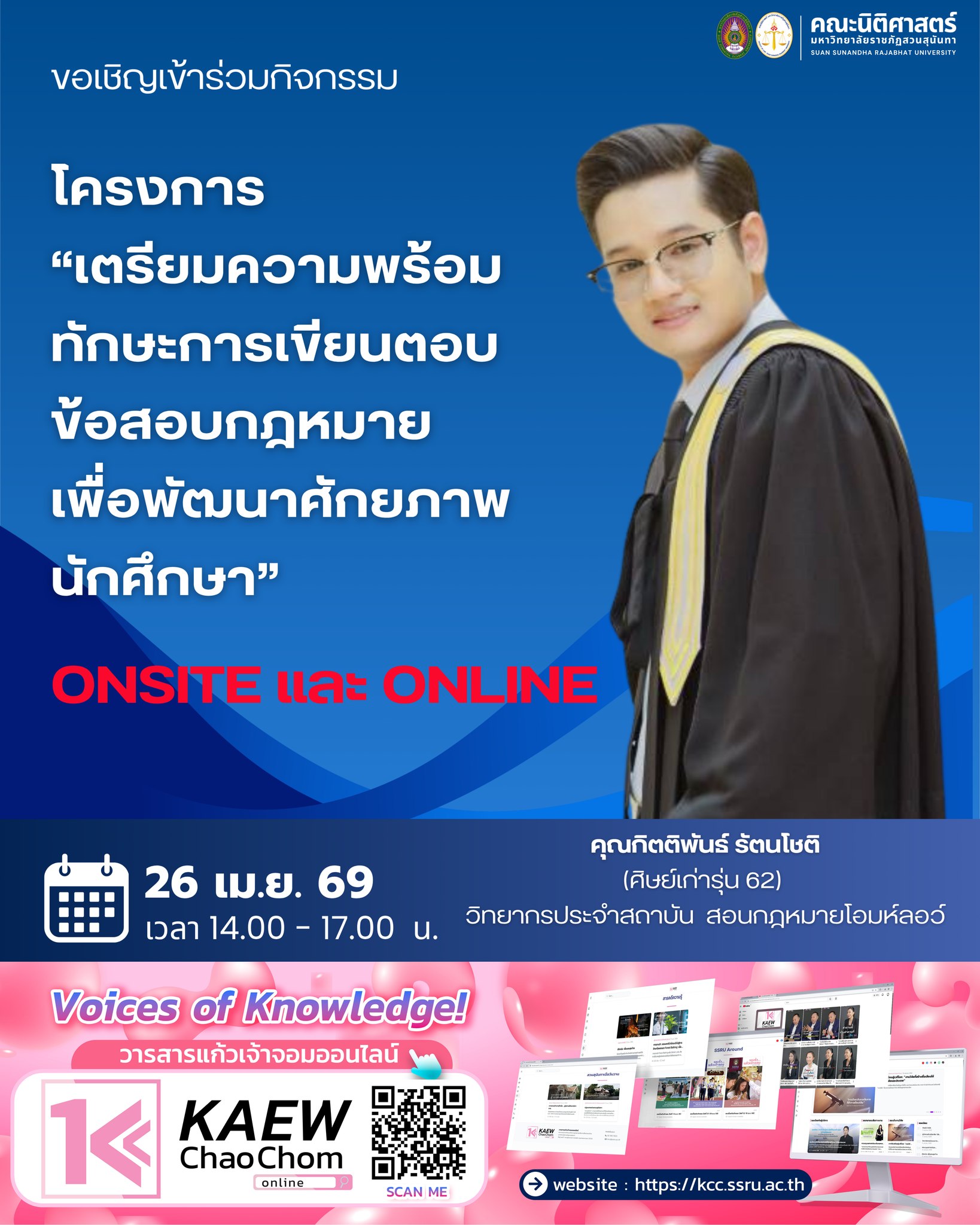 invited to participate in the project Special guest speaker: Mr. Kittiphan Rattanachot (Class of ’62), a lecturer from Home Law Institute, who will share in-depth techniques and practical strategies for writing high-scoring legal exam answers! Sunday, April 26,
