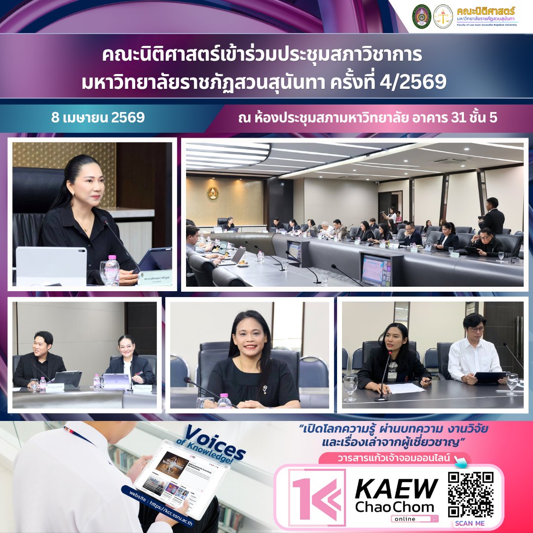 > คณะนิติศาสตร์เข้าร่วมประชุมสภาวิชาการ มหาวิทยาลัยราชภัฏสวนสุนันทา ครั้งที่ 4/2569