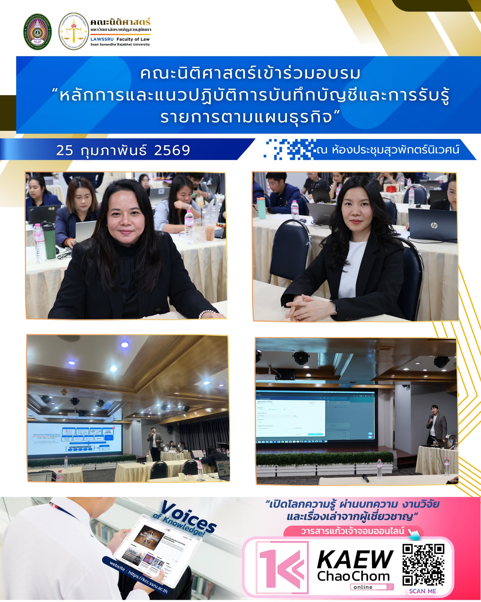 > คณะนิติศาสตร์เข้าร่วมอบรม "หลักการและแนวปฏิบัติการบันทึกบัญชีและการรับรู้รายการตามแผนธุรกิจ"