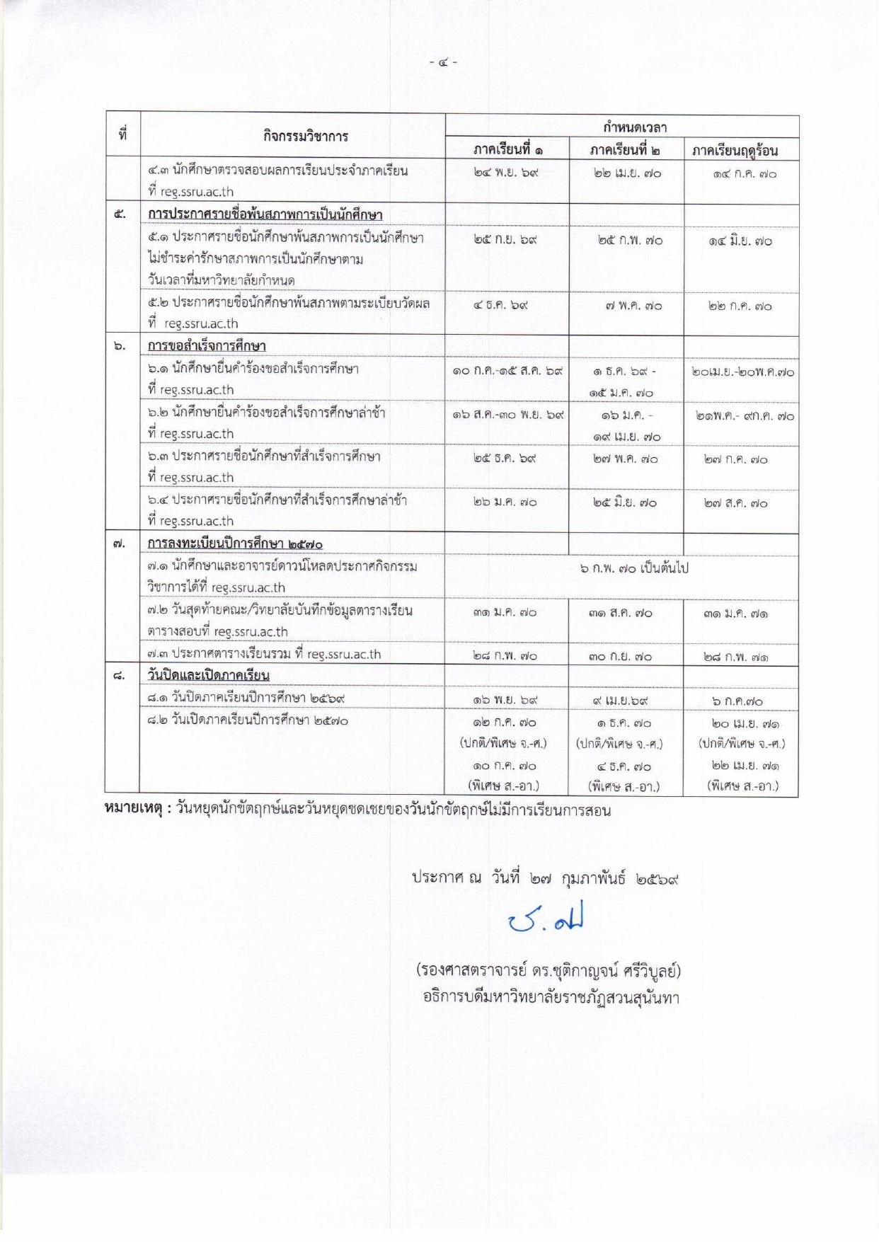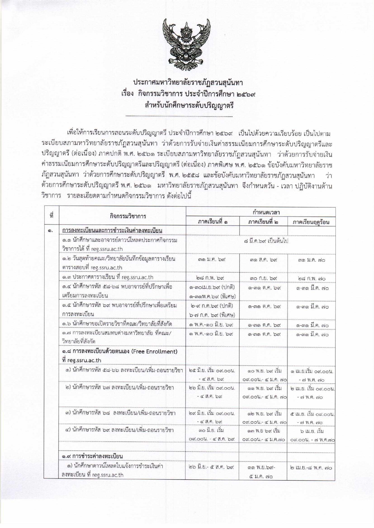 สามารถได้ดาวน์โหลดได้ตามนี้ >>> ปฏิทินกิจกรรมวิชาการ 2569 สำหรับนักศึกษาระดับปริญญาตรี