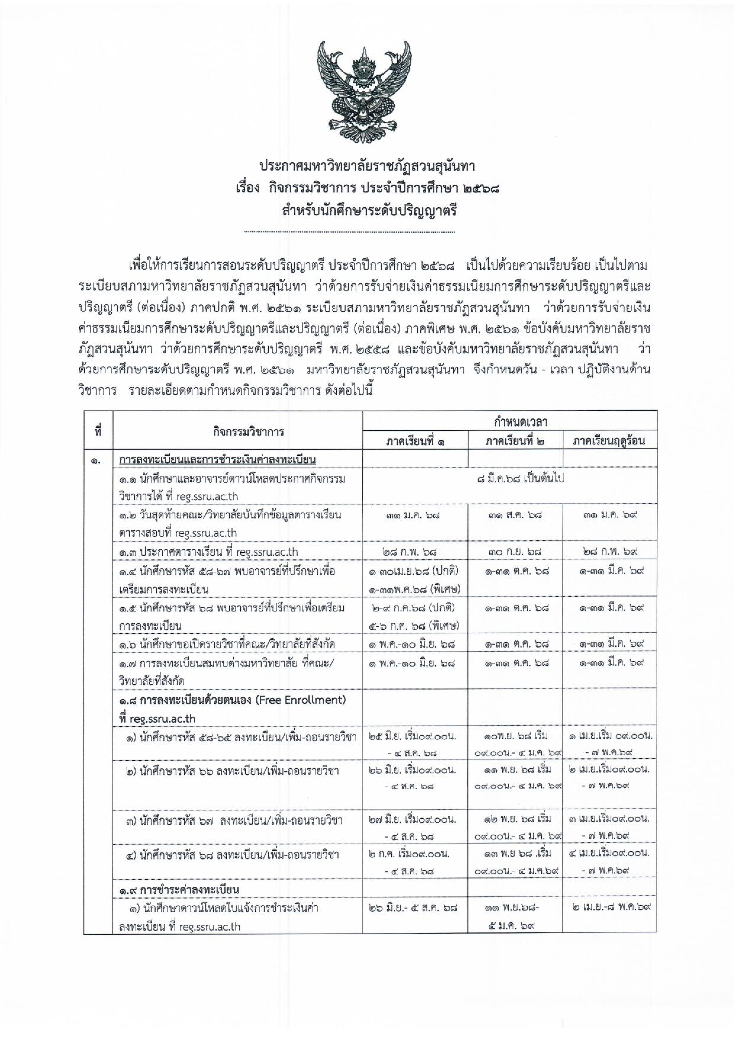 สามารถได้ดาวน์โหลดได้ตามนี้ >>> ปฏิทินกิจกรรมวิชาการ 2568 สำหรับนักศึกษาระดับปริญญาตรี