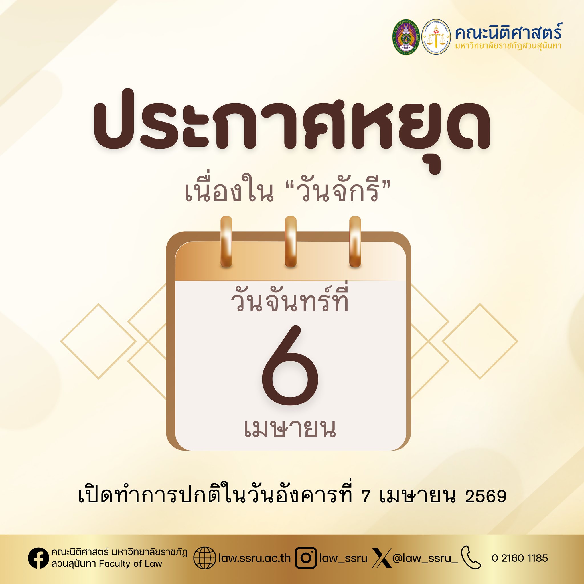 ประกาศปิดทำการคณะนิติศาสตร์ เนื่องใน "วันจักรี"
