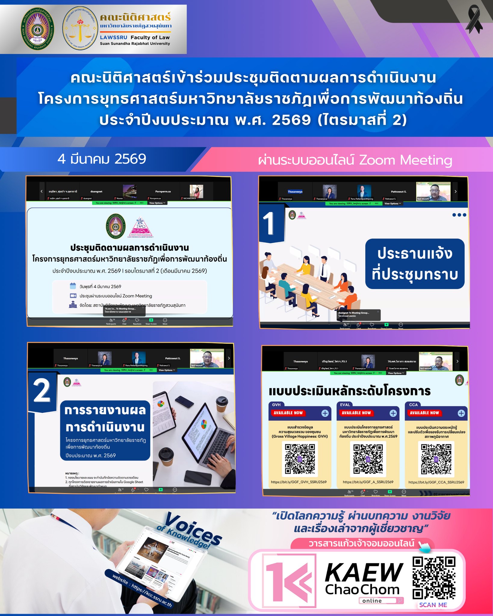 คณะนิติศาสตร์เข้าร่วมประชุมติดตามผลการดำเนินงานโครงการยุทธศาสตร์มหาวิทยาลัยราชภัฏเพื่อการพัฒนาท้องถิ่น