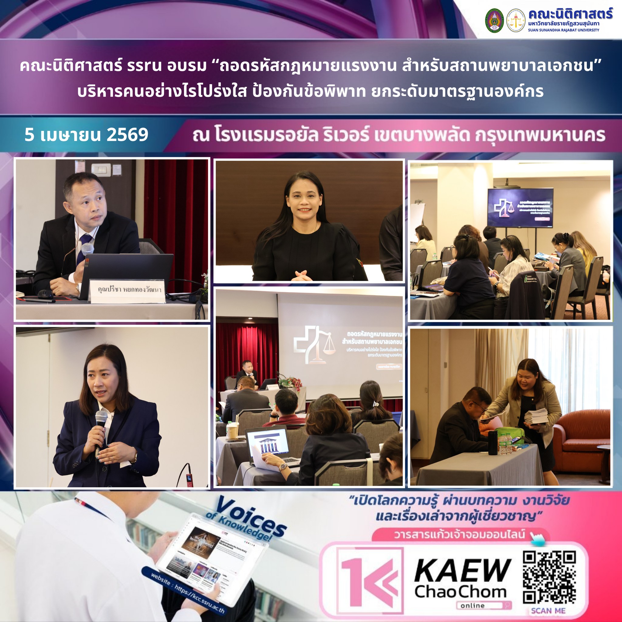 คณะนิติศาสตร์ SSRU บรรยายหัวข้อ "ถอดรหัสกฎหมายแรงงาน สำหรับสถานพยาบาลเอกชน"
