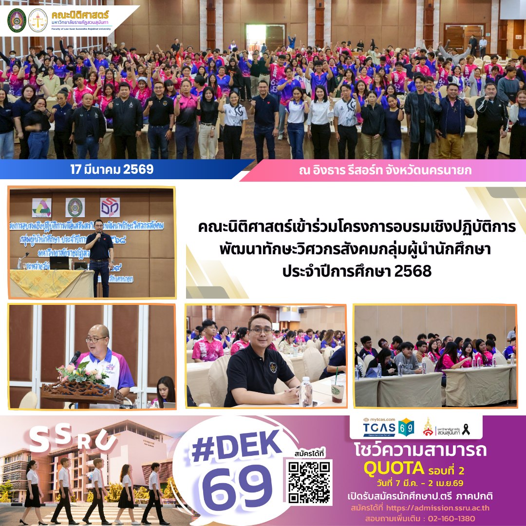 > คณะนิติศาสตร์เข้าร่วมโครงการอบรมเชิงปฏิบัติการพัฒนาทักษะวิศวกรสังคมกลุ่มผู้นำนักศึกษา ประจำปีการศึกษา 2568