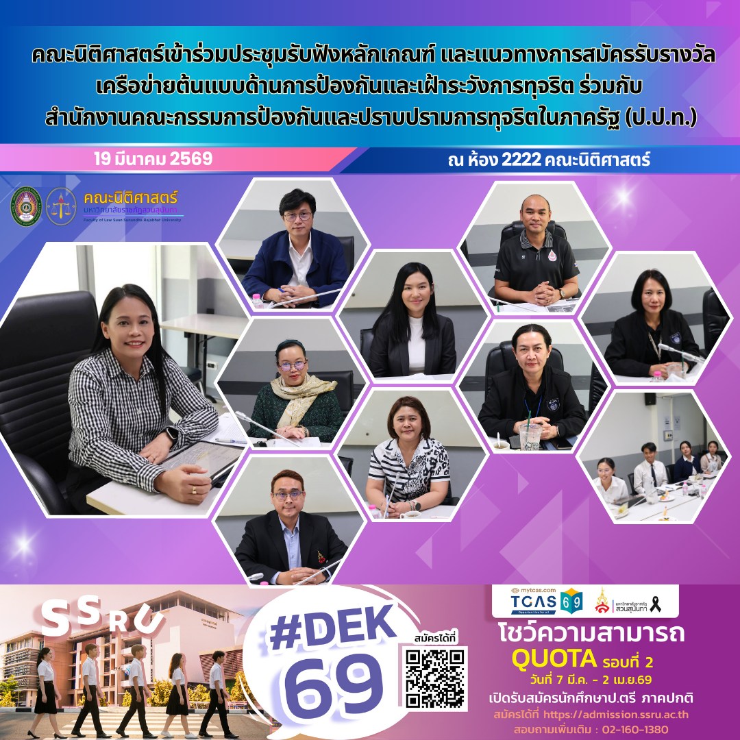 คณะนิติศาสตร์เข้าร่วมประชุมรับฟังหลักเกณฑ์และแนวทางการสมัครรับรางวัลเครือข่ายต้นแบบด้านการป้องกันและเฝ้าระวังการทุจริต