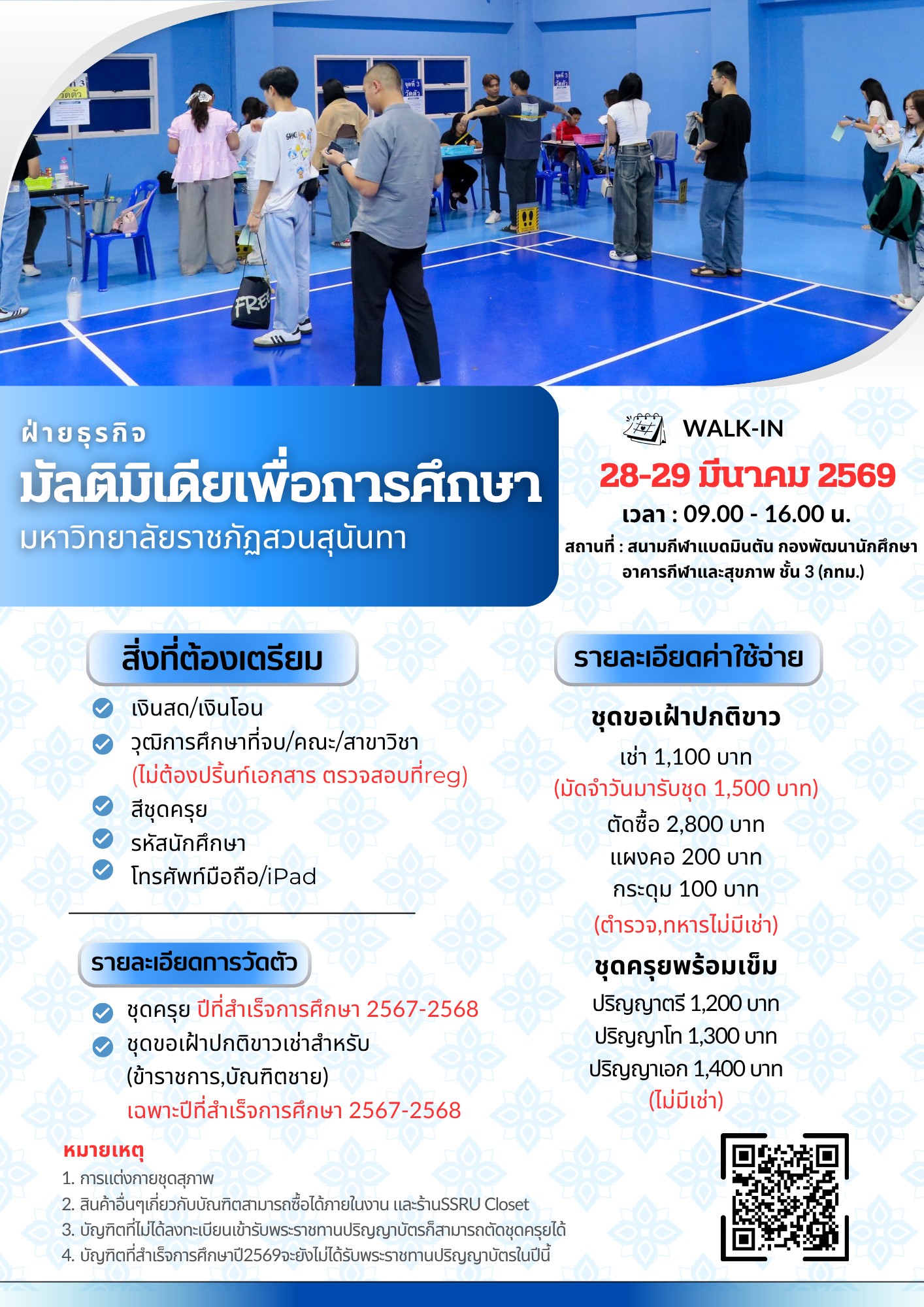 > เปิดวัดตัวตัดชุดครุยสำหรับบัณฑิต ประจำปีที่สำเร็จการศึกษา 2568 Walk-in 28 - 29 มีนาคม พ.ศ. 2569