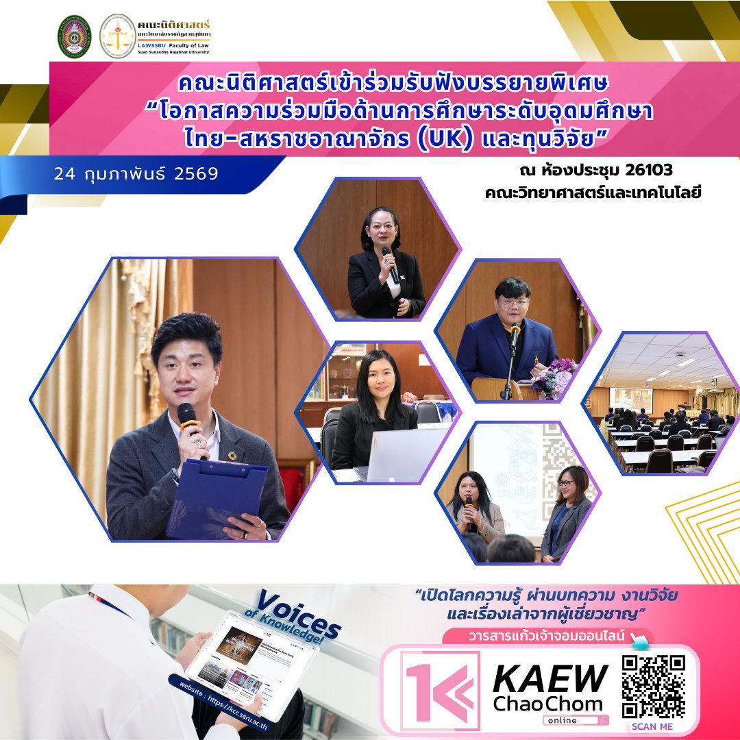 คณะนิติศาสตร์เข้าร่วมรับฟังบรรยายพิเศษ “โอกาสความร่วมมือด้านการศึกษาระดับอุดมศึกษาไทย-สหราชอาณาจักร (UK) และทุนวิจัย
