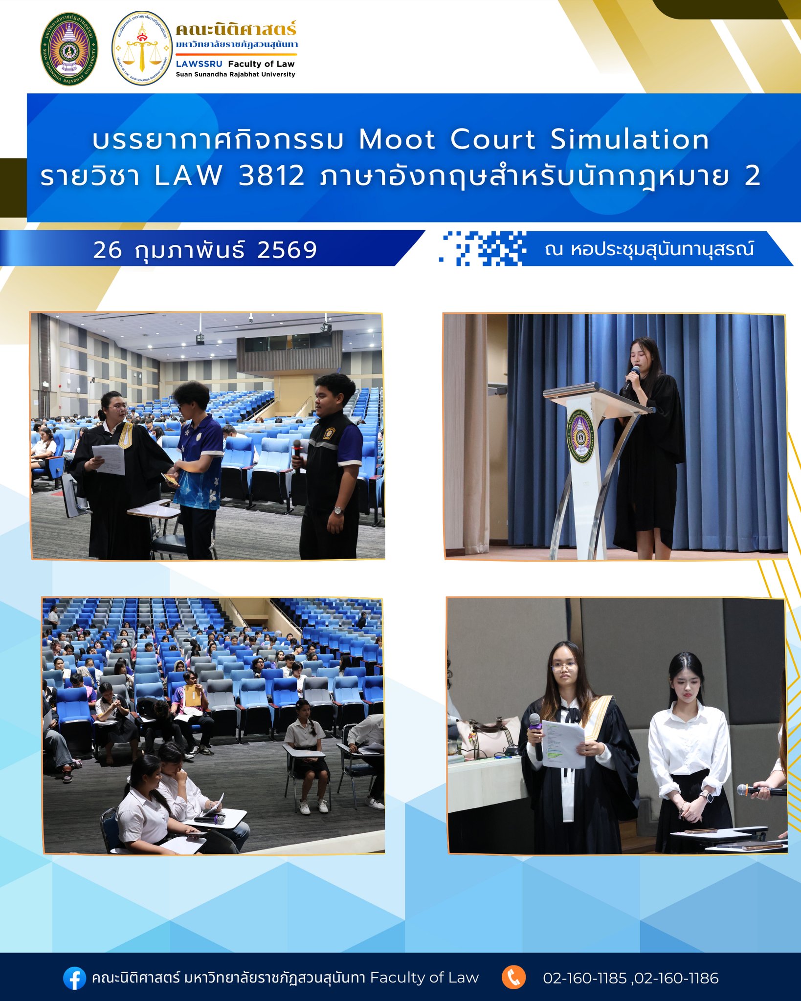 > บรรยากาศกิจกรรม Moot Court Simulation รายวิชา LAW 3812 ภาษาอังกฤษสำหรับนักกฎหมาย 2