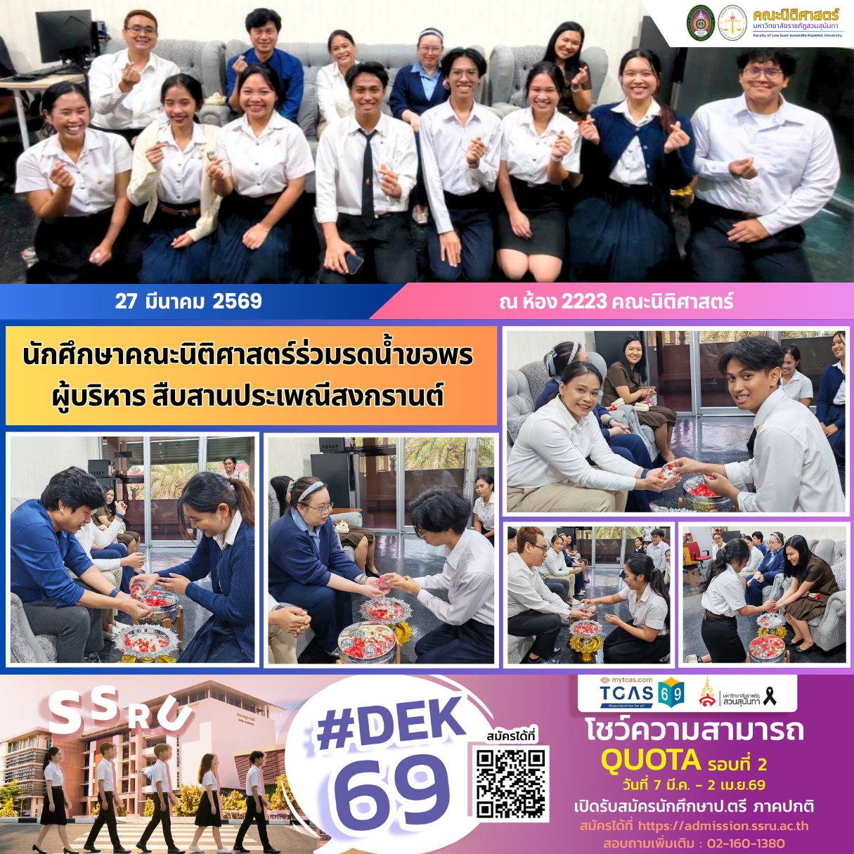 นักศึกษาคณะนิติศาสตร์ร่วมรดน้ำขอพรผู้บริหาร สืบสานประเพณีวันปีใหม่ไทย
